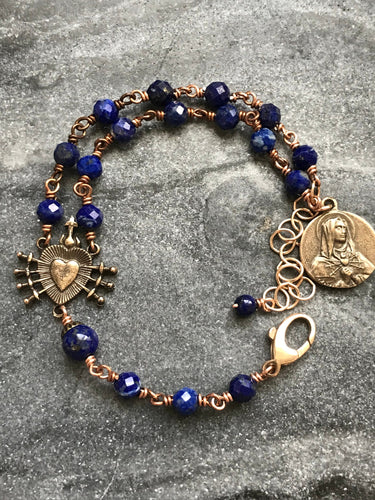 Servite Seven Sorrows Chaplet Bracelet - Bronze and Lapis Rosary