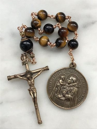 Saint Anthony Rosary - Tiger eye and Bronze - Single Decade Tenner