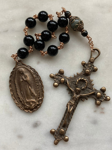 Our Lady of Guadalupe Single Decade Rosary - Onyx Emerald and Bronze Tenner CeCeAgnes