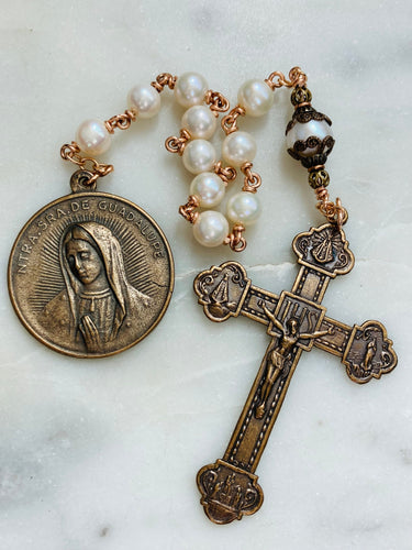 Pocket Rosary - Our Lady of Guadalupe - Pearl Tenner - Bronze Single Decade Rosary CeCeAgnes