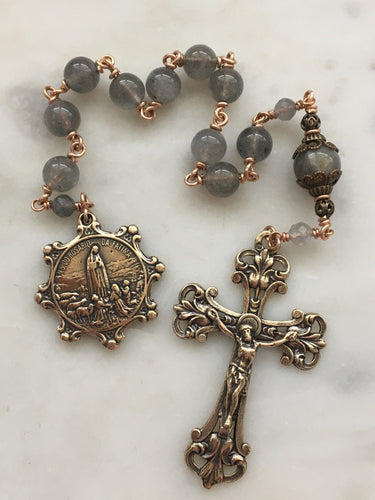 Our Lady of Fatima Pocket Rosary - Labradorite and Bronze - Single Decade Rosary CeCeAgnes