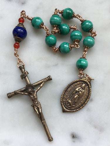Our Lady of Guadalupe Rosary - Malachite, Lapis, Carnelian and Bronze - Single Decade Tenner - Southwestern