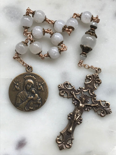 Our Lady of Perpetual Help Pocket Rosary - Moonstone and Bronze - Single Decade Rosary CeCeAgnes