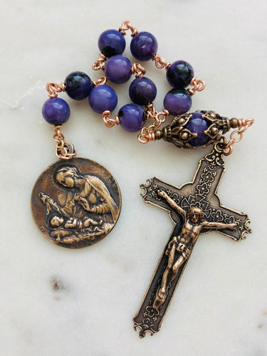 Virgin Mary and Infant Jesus Single Decade Rosary - Purple Charoite and Bronze - Tenner CeCeAgnes