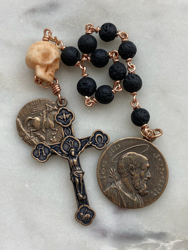 Saint George Memento Mori Pocket Rosary - Black Onyx and Ox Bone Skull - Bronze - Tenner - Single Decade Rosary CeCeAgnes