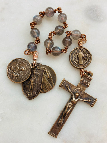 Saint Benedict Protection Pocket Rosary - Labradorite and Bronze - Single Decade Rosary CeCeAgnes