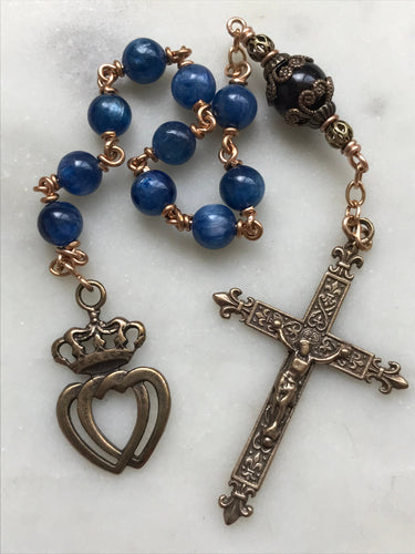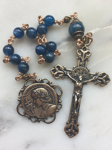 Joan of Arc Rosary Tenner - Kyanite Gemstone Rosary - Bronze - Single Decade Rosary CeCeAgnes