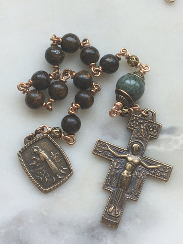 St. Francis Pocket Rosary - Bronzite and Green Chrysoberyl - Francisican Tenner - Bronze - Confirmation - Single Decade Rosary CeCeAgnes