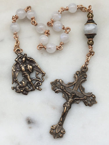 Saint Michael Pocket Rosary - Moonstone and Bronze - Single Decade Rosary CeCeAgnes