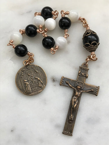 Saint Thomas Aquinas Pocket Rosary - Onyx and Mother of Pearl - Dominican Tenner - Bronze - Confirmation - Single Decade Rosary
