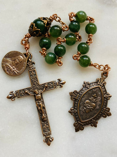 Sacred Heart Saint Therese Pocket Rosary - Jade - Single Decade Bronze Tenner