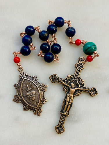 Sacred Heart Pocket Rosary - Lapis and Bronze - Single Decade Rosary - CeCeAgnes