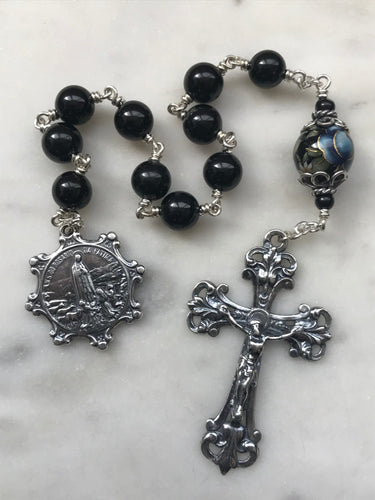 OL of Fatima Pocket Rosary - Black Tourmaline - Sterling Silver - Tenner - Single Decade Rosary CeCeAgnes